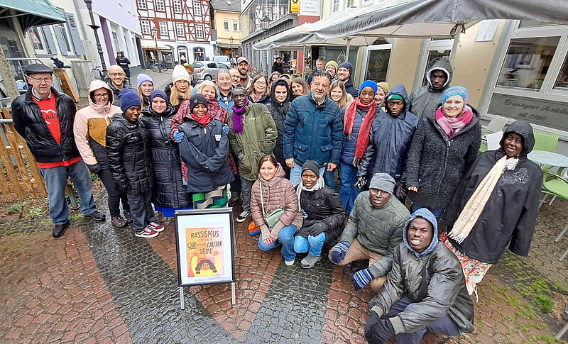 Über 70 Menschen folgten dem Aufruf zur internationalen Woche gegen Rassismus und trommelten trotz Kälte und Regen am Samstag lautstark in der Diezer Altstadt.