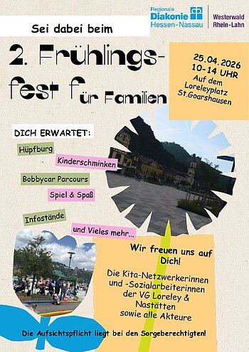 Am 25.04. findet wieder das von Kita-Sozialarbeit und Netzwerker:innen organisierte Frühlingsfest für Familien in St.Goarshausen statt.